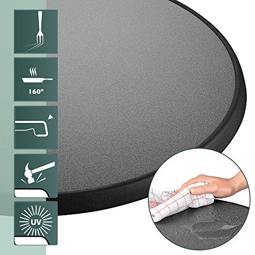 𝐑𝐔𝐍𝐃𝐄𝐑 𝐆𝐀𝐑𝐓𝐄𝐍𝐓𝐈𝐒𝐂𝐇: Der runde Bistrotisch in Anthrazit punktet durch sein edles Design. Der Grilltisch ist zerlegbar und kann in wenigen Handgriffen schnell aufgebaut und aufgestellt werden. Der Tisch ist 70 cm hoch und besitzt einen Durchmesser von Ø 60 cm. Die runde Tischplatte hat eine Stärke von 2,5 cm.