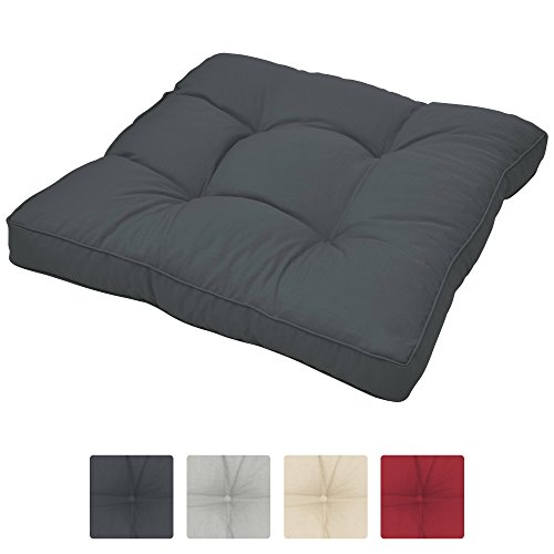 Beautissu Loungekissen 50x50x10 cm XLuna – Bequemes Sitzkissen mit 10 cm dicken Polsterung Sitzpolster für Rattan- & Gartenmöbel Outdoorkissen Stuhlauflage Indoor & Outdoor Made in EU – Graphitgrau