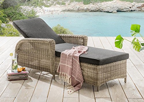 Inddor & Outdoor brauchbar, inklusive Polster, Rückenlehne mehrfach verstellbar, Traditionelle Handarbeit, Bezug abnehmbar und waschbar, wetterfest