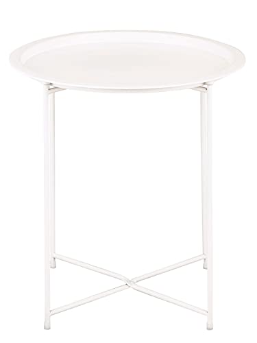 - Terrassentisch wetterfest mit abnehmbarem Tablett leer Metall – lässt sich flach zusammenlegen und verstauen