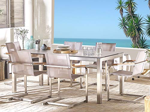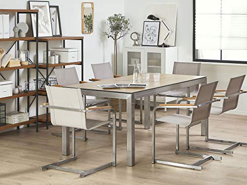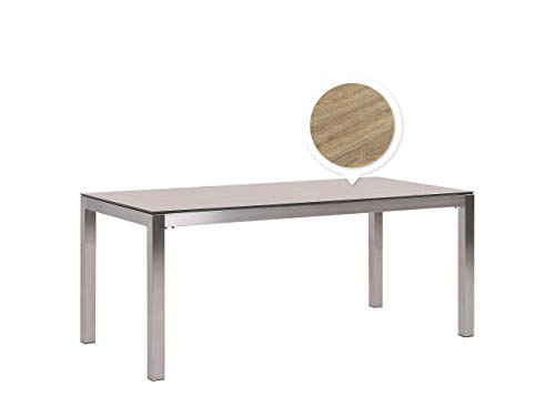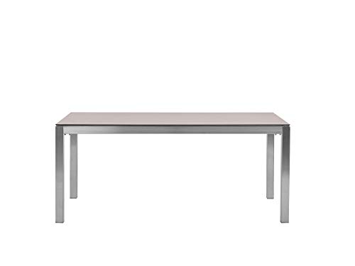 Mit diesem universellen Tisch müssen Sie sich nicht zwischen Terrasse, Garten- oder Küchenbereich Entscheidung – er passt allerseits. Das gebürstete Edelstahlgestell ist extrem langlebig, gefestigt, strapazierfähig und korrosionsbeständig. Die große, rechteckige Tischplatte ist aufgebraucht robusten unter Hochdruck verpressten Schichtplatten gefertigt. Die fertige wetterbeständige HPL-Platte wird mit einem melamin-imprägniertem Dekopapier in angesagter Holzoptik vervollständigt.