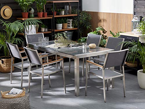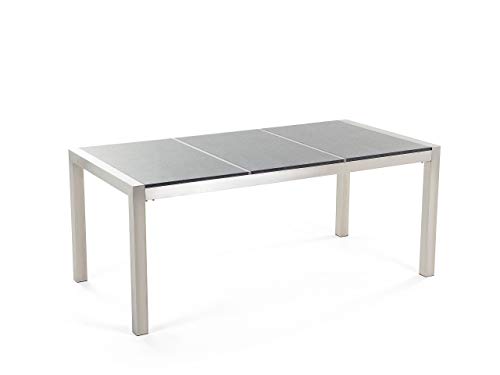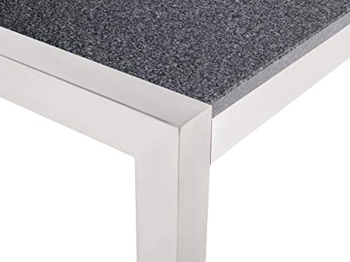 Der praktische Gartentisch ist eine elegante Addendum für Ihren Garten oder Ihre Terrasse. Die robuste, strapazierfähige Tischplatte die Gesamtheit grauem, poliertem Granit verleiht dem exklusiven Gartentisch eine extravagante Wirkung. Der moderne Materialmix ist perfekt auf das zeitlose, gradlinige Design harmonisch. Freuen Sie sich auf wunderschöne Stunden mit Familie und Gästen an Ihrem neuen Gartentisch.