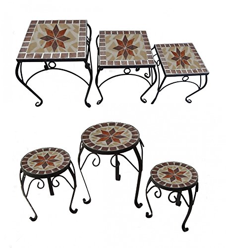 3er Set Blumenhocker / Beistelltische im Mosaik-Design