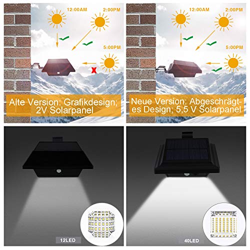 ☀【HOCHWERTIGE LED DACHRINNE SOLARLEUCHTE】- Die neue Version des 40LED-Dachrinne Solarleuchten hat eine bessere Textur und Helligkeit als das alte 12LED-Dachrinne Solarlicht. Solarleuchten für Außen bieten eine hervorragende Beleuchtung von bis zu ca. 700 LM, was heller ist als bei anderen ähnlichen LED-Leuchten. Wir glauben, dass dies das beste geeignete Licht für Sie ist