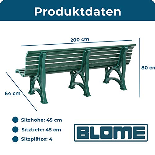 Blome Sitzbank Borkum – Gartenbank für Garten, Balkon, Terrasse, Parkbank in grün, 4-Sitzer, Made in Germany