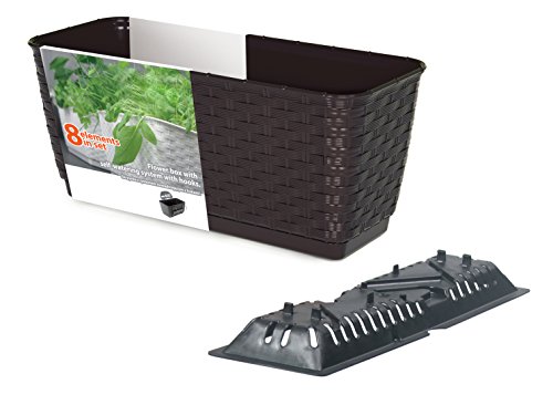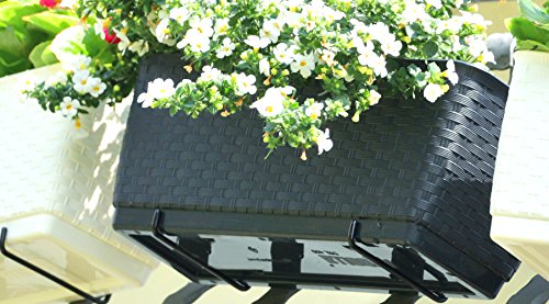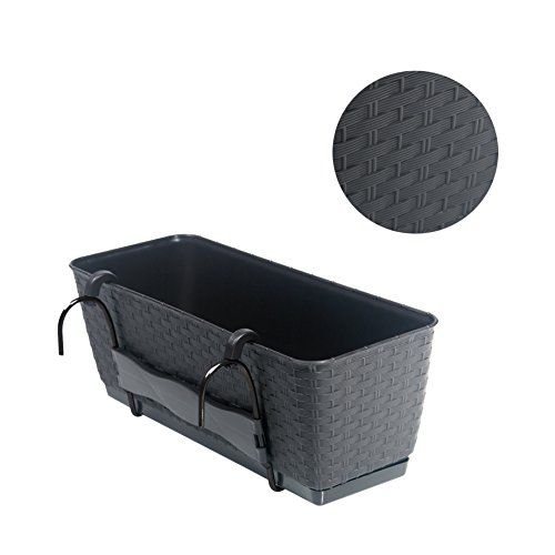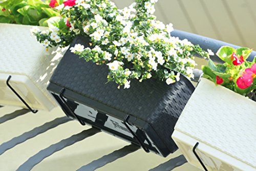 Der Geländerkasten allesamt den trendigen Polyrattan Optik, unter Einsatz von Halterungen zur Aushängung, in vier Farben und drei Größen zur Auswahl ist perfekt anstelle Balkon, Terasse, Garten oder man kann ihn einfach auf den Boden oder auf das Fensterbrett setzen. Die robuste Bauweise und Widerstandsfähigkeit gegen Frost und Sonnenlicht macht, dass aus seine Anblick unter Zuhilfenahme von allerlei Jahre zu genießen wird.