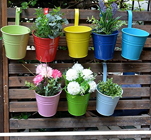 Blumentöpfe zum Aufhängen , RIOGOO Eisen Hängeblumentöpfe , Balkon Garten Töpfe Wand Pflanzer Metallwanne Blumenhalter…