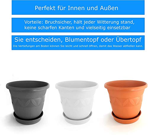 ✅ Wir bieten unsere Blumentöpfe / Uebertöpfe in verschiedenen Farben und Größen an. Somit sollten Sie für jede Art von Pflanzengrößen und dem jeweiligen Einsatzort gerüstet sein. Unsere Farbpalette umfasst aktuell Terrakotta, Anthrazit und Weiß