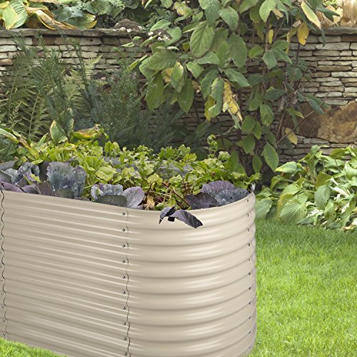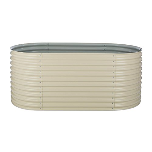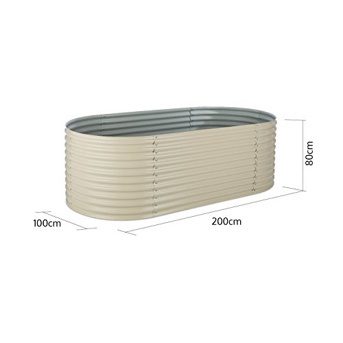 WITTERUNGSBESTÄNDIG: Die stabile Rahmenkonstruktion des Gartenbeetes ist nicht mehr da Stahl-Wellblech gefertigt und durch eine spezielle Zink-Aluminium-Legierung samt beige-farbener Pulverbeschichtung erschütterungsfest gegen jeder Witterungseinflüsse geschützt.