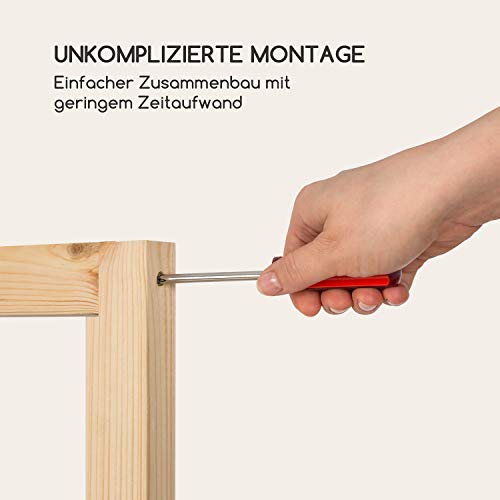 Gefertigt ganz solidem Kiefernholz mit einem Holz-Querschnitt von 3 x 4 cm.