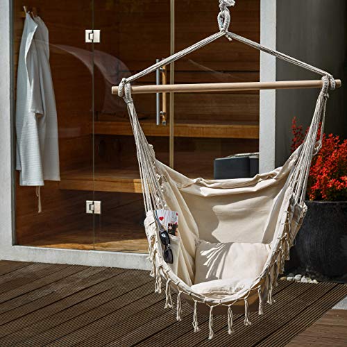 MULTIFUNKTIONAL – Wir können den Stuhl zu Hause, außerhalb der Stadt, im Park, derweil eines Musikfestivals und an anderen Orten verwenden, an denen er stabil befestigt werden kann. Ein hängender Sitz ist ein häufiges Element von Strandbars und Restaurants.
