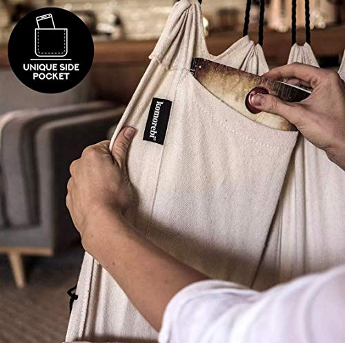 ERHOLUNGSKOMFORT – Der brasilianische Stuhl ist eine Art Hängematte, die sich an die Körperform anpasst und für völlige Entspannung und Ruhekomfort sorgt. An einer der Wände befindet sich eine geräumige Tasche, in die Sie Ihr Smartphone, Tablet, Buch, Magazin oder andere Kleinigkeiten passen.