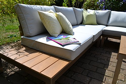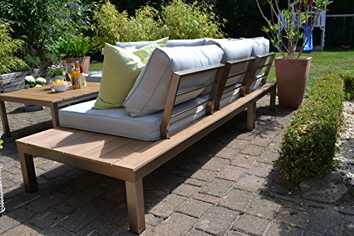 QUALITÄT: Hochwertige Gartengarnitur die Gesamtheit Ecklounge und Tisch. Die robusten Alu-Möbel sind pflegeleicht und wetterfest.