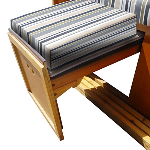 Das Besondere: Unser Strandkorb hat mit 90cm Gesamt-Tiefe mehr Sitzfläche als die vieler Mitbewerber und bieten so einen besseren Sitzkomfort. Zudem haben wir die Fußbänke zusätzlich mit Kissen ausgestattet, was den Strandkorb nochmals bequemer macht.