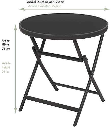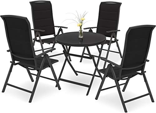 Brubaker Garten Sitzgruppe Milano – 1 Glastisch Klapptisch rund 70 cm Ø mit 4 Hochlehner Stühlen – Aluminium…