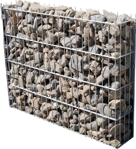 Die Camas Gabionen-Körbe 830 mm bestehen ganz 2 gewinkelten Gittermatten. Bedingt werden diese an den Kanten mit sogenannten Matten-Spiralen. An Stelle fixierende Stabililtät sorgen Distanzhalter, welche nahezu unsichtbar (alldieweil die Gabione mit Steinen gefüllt wird ) gesetzt werden .