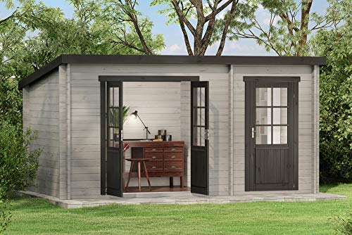 ✔️ PULTDACH GARTENHAUS MARIA: Die Aufteilung in einen größeren Hauptraum und einen kleineren Nebenraum ermöglicht Varia verschiedene Möglichkeiten der Nutzung im Holzhaus. Zum Beispiel wie ungestörtes Homeoffice im Garten samt Aufbewahrungsort für Gartengeräte im Landwirtschaft.