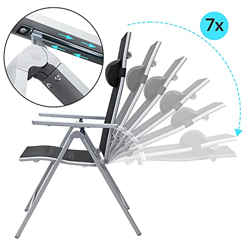 7-FACH VERSTELLBARE LEHNE – Diese Alu Gartenstuhl Hochlehner Bern Premium im 2er Set von CASARIA in alleinig breiter Transaktion überzeugen durch hochwertige Materialen, lange Lebensdauer und hohen Komfort. Ein exklusives Komfortplus ist die 7-fach verstellbare Liegefunktion. Dadurch lässt sich Rückenlehne von aufrecht bis nahezu liegend über die Armlehnen adjustieren. So können Sie sich die Gesamtheit entspannt zurücklehnen und einfach doch relaxen. Perfekt für Garten, Balkon oder zum nächsten Camping Ausflug!