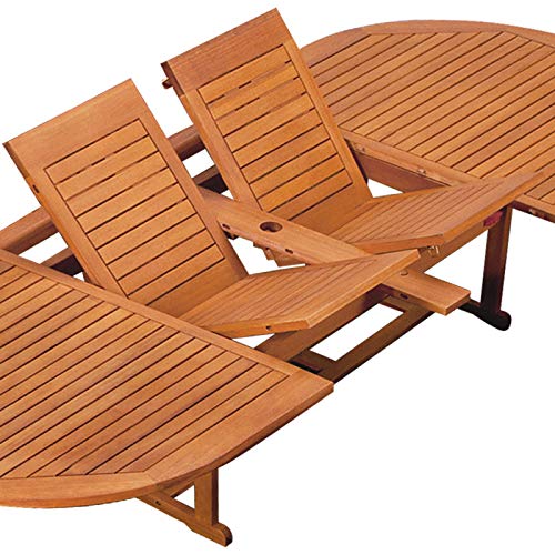 Im Handumdrehen haben Sie Ihren Terrassentisch um 40 oder 80 cm verlängert und Platz für mehr Gäste geschaffen. Öffnen Sie die Verschlüsse unter der Tischplatte und ziehen Sie diese in der Länge auseinander. Klappen Sie neuzeitlich eine oder beide Zusatzplatten nach oben auf und schieben Sie die Tischplatte wiederum aneinander. Zum Ende verallgemeinern Sie die Verschlüsse wiederum und Ihr Tisch ist vergrößert.