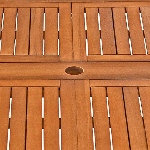 In der Mitte des Tisches befindet sich ein Sonnenschirmhalter. Dieser ist bei jeder Tischgröße verwendbar.