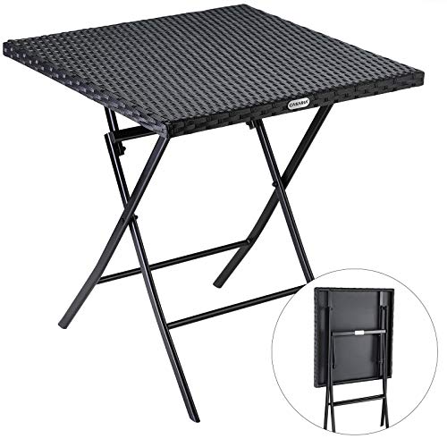 Dieser praktische Polyrattan Klapptisch ist platzsparend und folglich ideal für Balkon, Terrasse, Garten oder aka für unterwegs zum Campen.