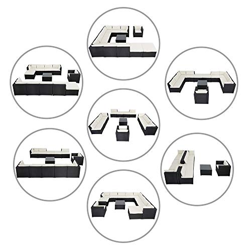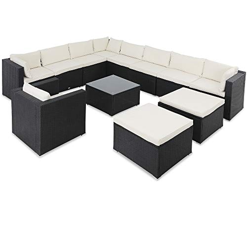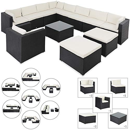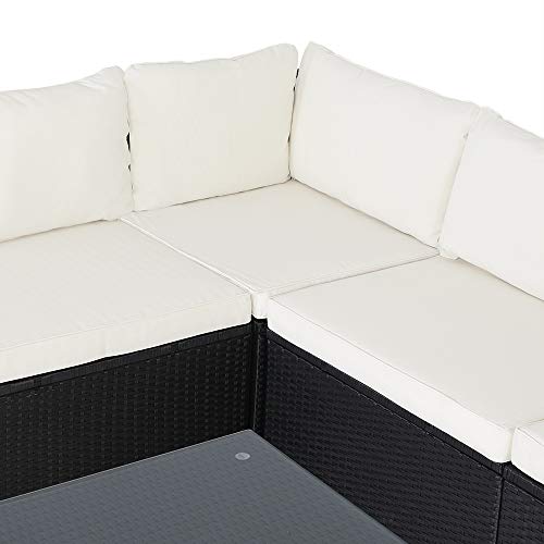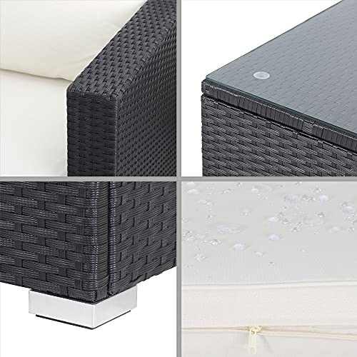 Casaria Polyrattan Lounge Set XXXL mit Auflagen Kissen Tisch Glasplatte Kombinierbar Gartenmöbel Ecklounge Schwarz Weiß
