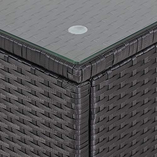 Jedes Element ist mit robusten Füßen ausgestattet, die zusätzlich sondern einen sicheren Stand auf Ihrer Terrasse sorgen. Die große Sicherheits – Glasplatte lässt sich einfach vom Tisch abflauen. Dank der Saugknöpfe liegt sie zäh auf dem Tisch auf.