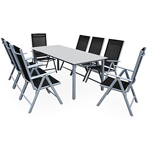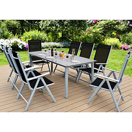 Casaria® Gartenmöbel Set 8 Stühle mit Tisch 190x90cm Aluminium Sicherheitsglas Wetterfest Klappbar Modern Terrasse Balkon Möbel Sitzgruppe Garnitur Bern