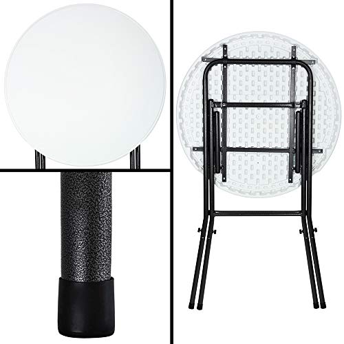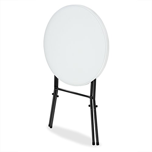 Der runde, 110cm hohe Klapptisch mit pflegeleichter Kunststoffplatte und stabilem pulverbeschichtetem Metallgestell eignet sich bestens für Gartenpartys, Geburtstagsfeiern, Hochzeiten oder andere Events. Die große, einzig dicke Tischplatte lädt zum gemütlichen Zusammensein ein und dient dabei als praktische Ablagefläche.