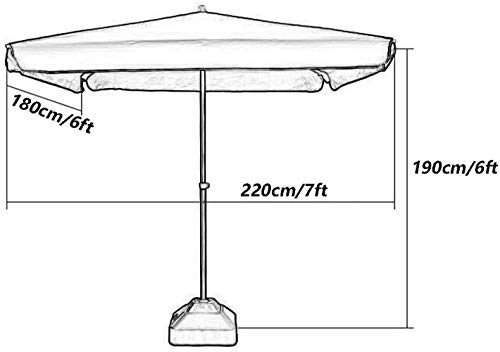 Größe (optional): 200 cm × 200 cm, 220 cm × 180 cm, 250 cm × 250 cm, 280 cm × 220 cm. Die starke Metallstange macht den Sonnenschirm sehr belastbar und langlebig.