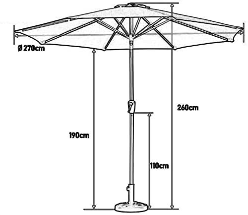 Größe: 270 cm (9 Fuß). Die starke Metallstange macht den Sonnenschirm sehr leistungsfähig und langlebig.