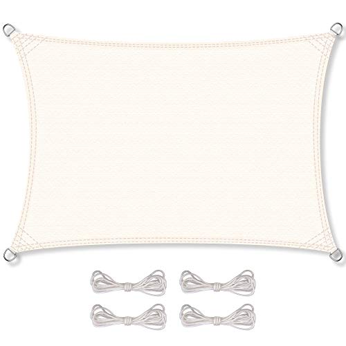 das Segel Set besteht aus: 1x Sonnensegel wind- und wasserdurchlässig (HDPE), Farbe: creme-weiß, rechteckig 2x3m, 4x Befestigungsseile (je ca. 1,5m), reißfestes High Density Polyethylen Gewebe (HDPE), sorgt für ca 85% Abschattung, Gewicht von ca 185-190g/qm