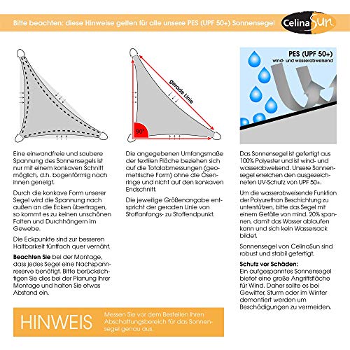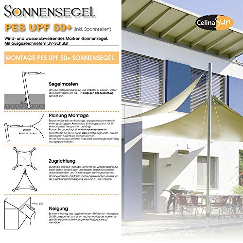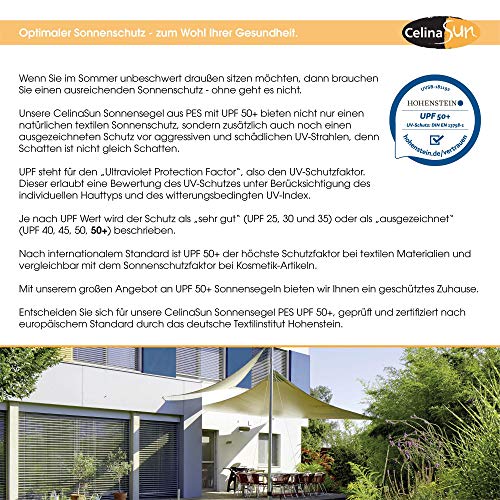 CelinaSun Sonnensegel PES UPF 50+ hoher UV-Abschirmung in vielen Größen, Abhalten und Farben