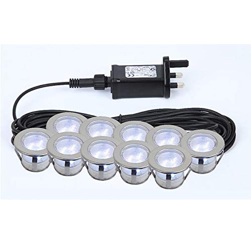 CGC LED-Leuchten-Set aus Edelstahl, rund, 10 Stück, 4000 K, natürliches Weiß, Sockel mit Plug-and-Play-UK-Stecker, ideal…
