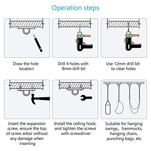 CHALA 2 Stücke Deckenhaken Hängesessel Edelstahl Deckenhalterung Schaukelhaken Hängematte Wandhaken mit Karabiner…