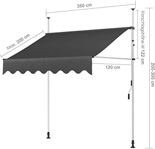 Höhenverstellbar : Die Höhe der beigen Balkonmarkise lässt sich veränderbar zwischen 200 des Weiteren 300cm begrenzen