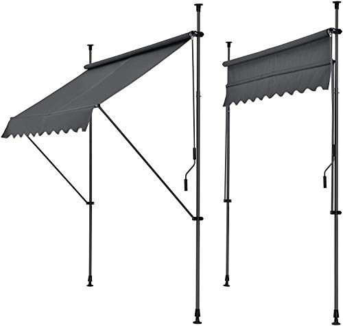 Klemmmarkise Gelenkarmmarkise Ohne Bohren 350cm Breit Grau Balkonmarkise Sonnendach Markise mit Gestell einrollbar…