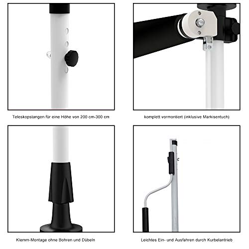 Schonend : Markise zum Klemmen, kein Bohren – Schonend Füße – Keine Beschädigung des Wohnobjekts