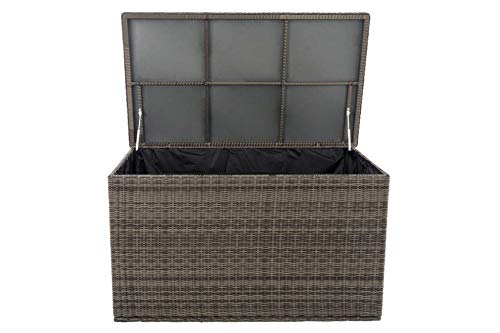 HOCHWERTIG: Edle und funktionelle Kissenbox aus wetterbeständigem, UV-beständigem und besonders starkem Polyrattan (Ø 5 mm Stärke) I Gestell aus stabilem, pulverbeschichtetem und rostfreiem Aluminium
