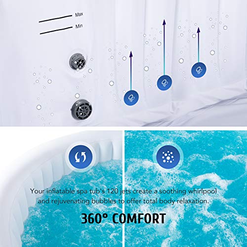 ENTSPANNEN SIE SICH – Dieser aufblasbare 4-Personen-Whirlpool erwärmt seine 800 Liter auf 40 ° C und erzeugt ganz seinen 120 Hochleistungsdüsen mit präzise der richtigen Intensität verjüngende Blasen, die Ihnen die Entspannung zur Verfügung stellen, die Sie nach einem langen Arbeitstag verdienen.