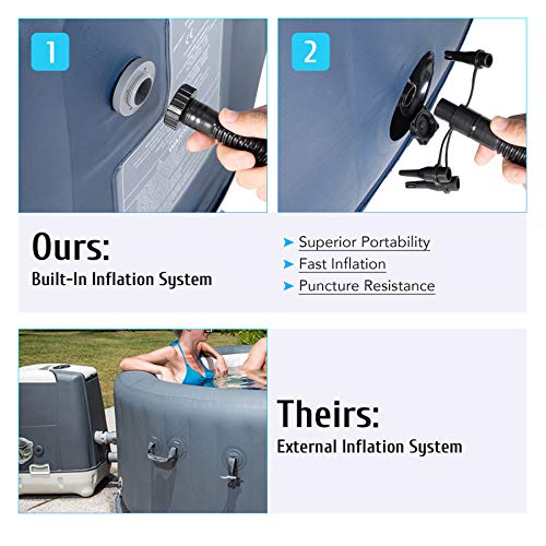 BENUTZERFREUNDLICHES DESIGN – Diese aufblasbare quadratische Badewanne bietet ein Spa-Erlebnis: Ein intuitives Bedienfeld anstatt eine einfache Bedienung. Eine abnehmbare Sicherheiten, um Ihre Wanne zwischen den Einsätzen sauber zu halten. 2 frische Filterpatronen, um das Wasser sonst zu halten, und ein robustes Absperrvorrichtung anstatt schnelles Ableiten.