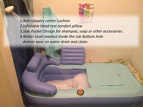 SUPER BEQUEM – Unsere aufblasbare Wanne ist super bequem mit aufblasbaren Rückenlehne, Armlehnen und Kissen. Es ist bekannt, dass regelmäßiges Bad dazu beitragen, Giftstoffe im Körper zu beseitigen, die Haut zu verbessern und den Körper abzunehmen.
