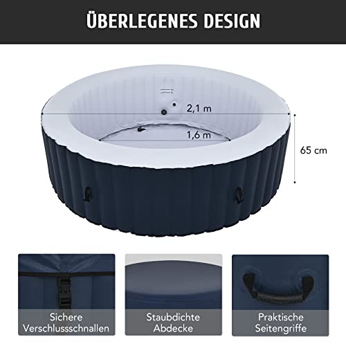 PASST FÜR BIS 6 PERSONEN – Unser 2.1×2.1 Meter runder Whirlpool bietet Platz anstatt bis zu vier Erwachsene und ermöglicht es Ihnen und Ihren Freunden, Ihre Freizeit zu Hause, auf Ihrer Terrasse, im Hinterhof oder anderswo zu genießen.