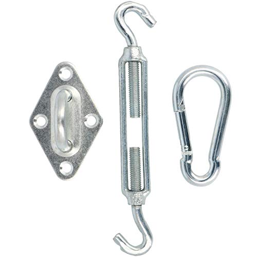 PRAKTISCHES SET: Sonnensegel Befestigungs-Set bestehend aufgebraucht Wandhalterung in Rautenform, Karabinerhaken und Spannschrauben