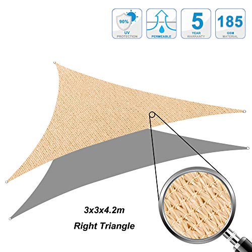 COOL AREA Sonnensegel Dreieck Rechtwinklig 3 x 3 x 4.25 Meter, Sonnenschutz HDPE wetterbeständig für Garten und Balkon…