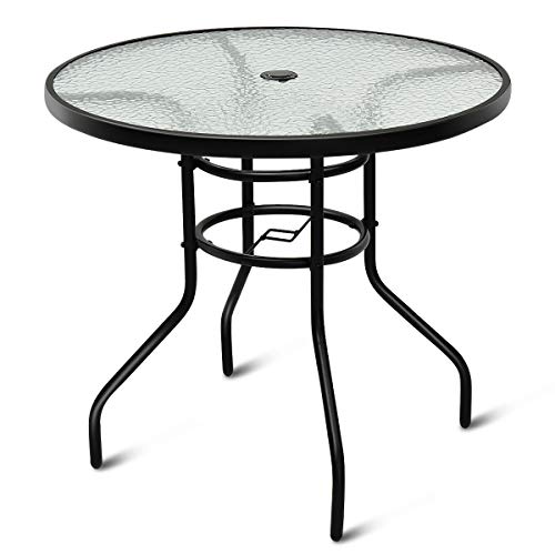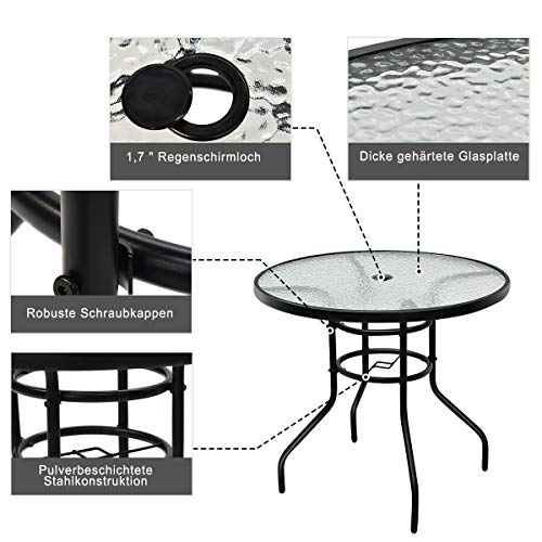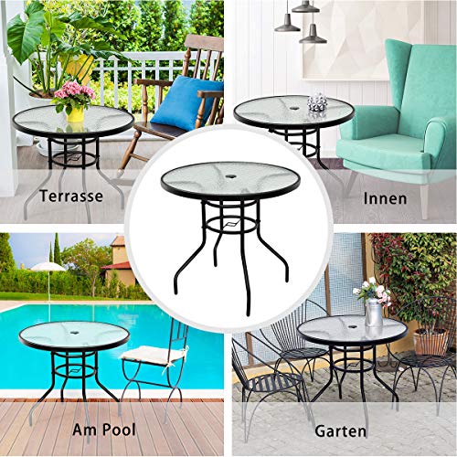 Dieser große Terrassentisch mit einem Durchmesser von 82 cm bietet Ihnen jede Absolutbetrag Fläche zum Essen, Lesen und Entspannen und verfügt unterdessen über ein praktisches Loch für einen Regenschirmhalter. Er besitzt eine solide Tischplatte allesamt gehärtetem Glas in einem einzigartigen Look, ist unterdessen rost- und korrosionsbeständig und kombiniert so einfache Funktionalität mit stilvollem Design.