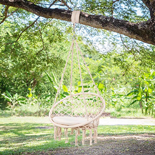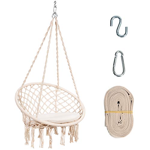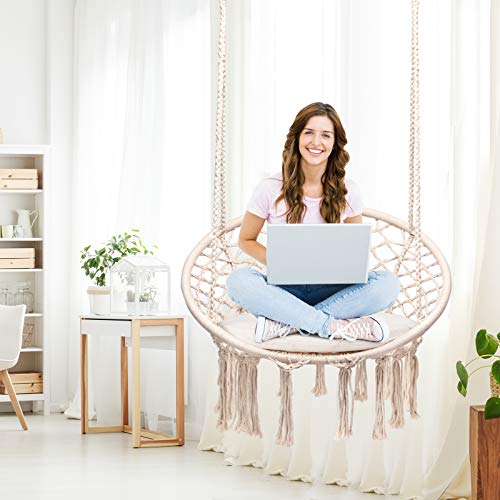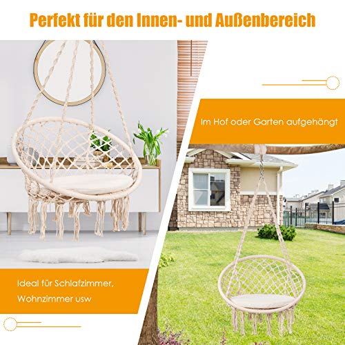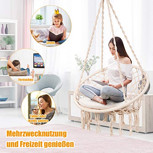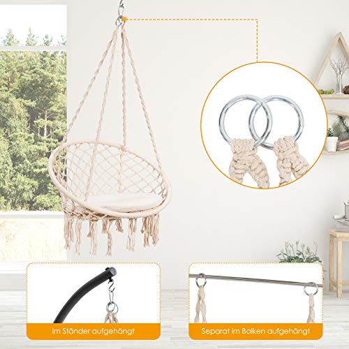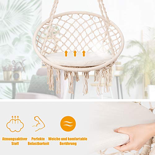 COSTWAY Hängesessel mit Sitzkissen, Hängestuhl zum Aufhängen, Hängesitz bis 136 kg belastbar, Schaukelstuhl inkl…