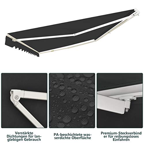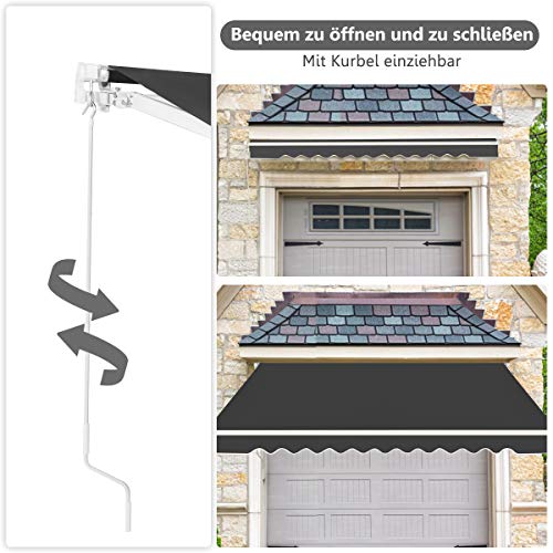 【Einziehbares Design für Bequeme Nutzung】 Die Markise kann zu einer Rolle eingezogen werden, wenn Sie sie gerade nicht brauchen. Ausgestattet mit einem langen Kurbelgriff, ist die Markise einfach und geschmeidig zu öffnen und zu schließen. Sie müssen lediglich die Kurbel im oder gegen den Uhrzeigersinn drehen.