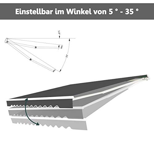【Bietet Schatten mit Anpassbarem Winkel】 Ausgestattet mit einer großen Unterstellfläche wird die Markise effektiv davor schützen, der Sonne ausgesetzt zu sein. Zusätzlich kann der Winkel zwischen der Markise und dem Boden ebenfalls in einem Stückchen von 5-35 Stufung verstellt werden, sodass sie sich an Ihre Bedürfnisse nach Schatten gleichsetzen kann.