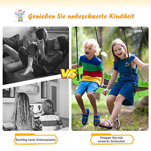 【Gewissenhaftes Design】Die Schaumstoffgriffe an beiden Seiten erleichtern es, die Balance zu halten und einen besseren, sichereren Halt zu haben. Die Netzstruktur in der Mitte ist elastisch, weich sowie luftdurchlässig, weshalb es auf der Schaukel nie zu warm wird. Die umrundende Schaumstoff-Polsterung des äußeren Rahmens bietet außerdem einen wichtigen Schutz und gleichzeitig hohen Komfort.